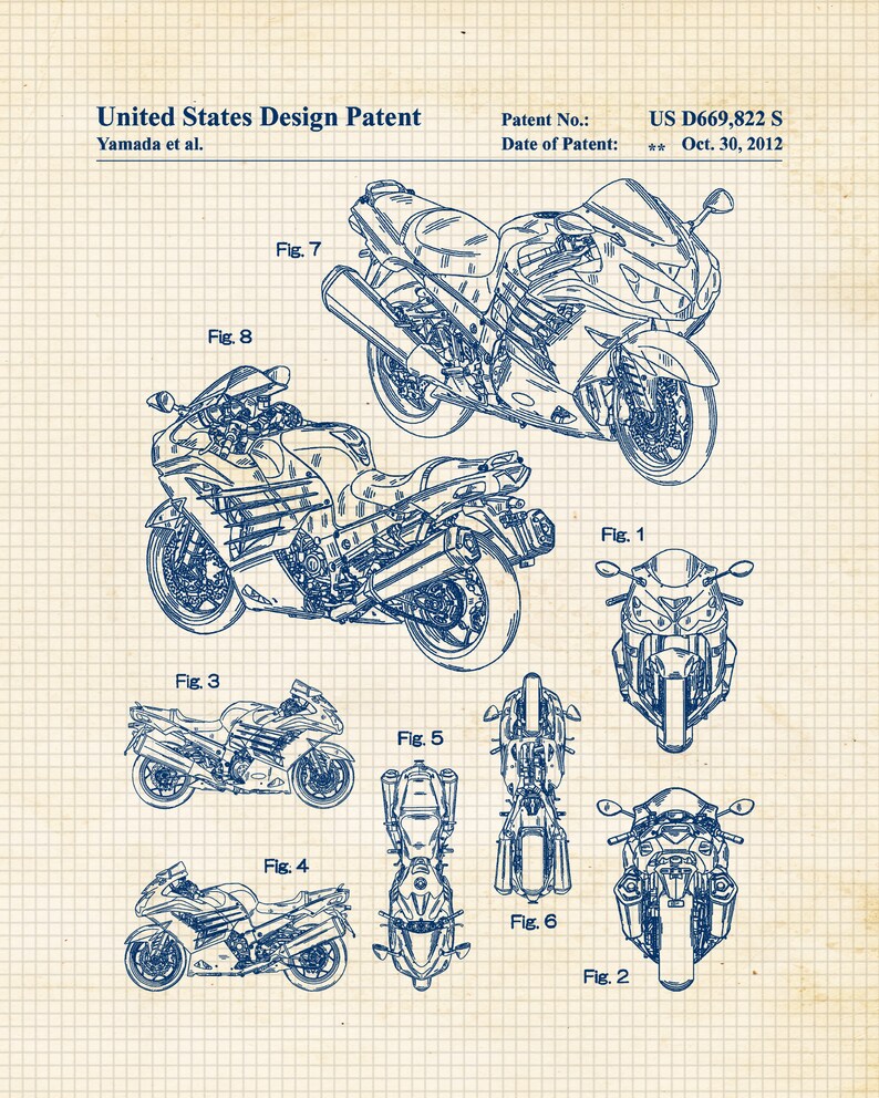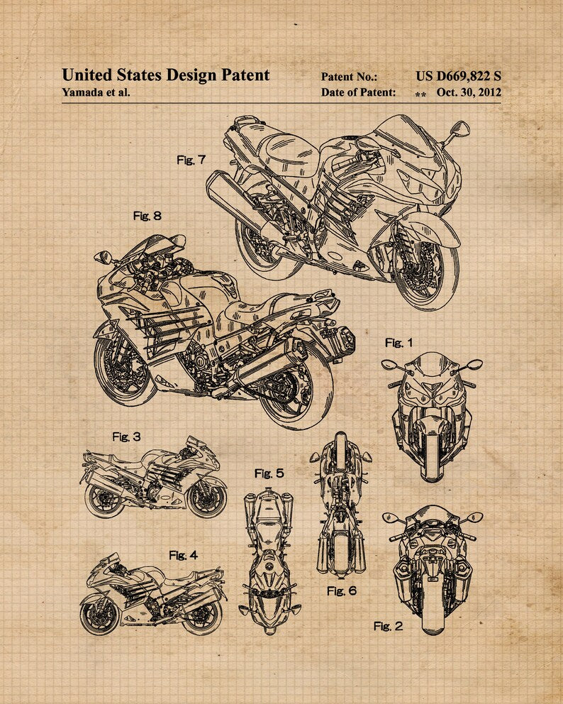 - Vintage Motorcycle Blueprint Wall Art: A Legacy of Engineering and Style